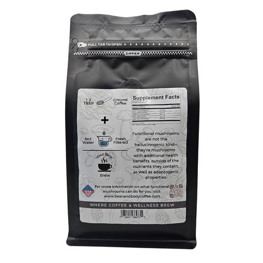 Bean & Body: Power 5 Functional Mushroom Coffee (Lions Mane, Reishi, Turkey Tail, Shiitake and Cordyceps Mushrooms)